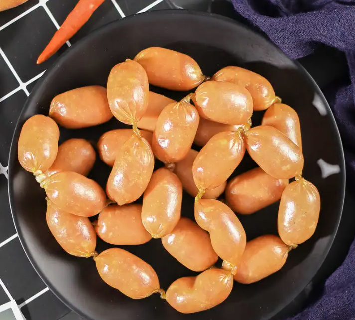 迷你小枣肠肉枣肠因其造型别致状如红枣而得名,一种甜口味的香肠,其色泽比较红艳,味道咸甜适中,还有它的肉质也是十分紧致的,口感甚是Q弹,品质相当不错呢。一般以猪肉为原料经绞碎、搅拌、灌装、蒸煮、包装等多道工序制作而成的休闲即食食品。